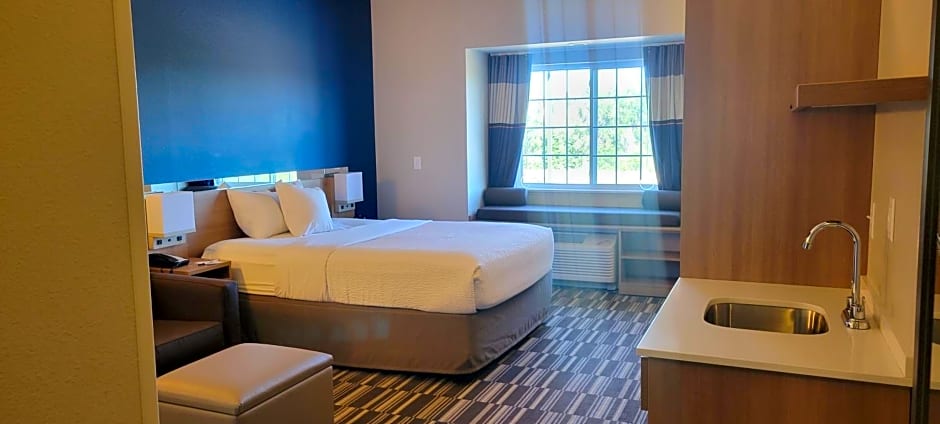 Free high-speed WiFi, free continental breakfast, bathtub/shower combination, bathtub grab bars, bathroom is wheelchair accessible, bedroom is wheelchair accessible, adjustable hand-held shower wand, portable bathtub seat, raised toilet seat with grab bars, closet rods at wheelchair height, electrical outlets at wheelchair height, flashing door knocker, light switches at wheelchair height, viewport at wheelchair height, sofa bed, mini-fridge, microwave, in-room temperature control, coffee/tea maker, hair dryer, HDTV, bathroom amenities, alarm clock, iron, ironing board, tables and chairs